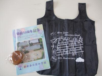 エコバックはさっそく使っている子もいます。栄地区の地図がデザインされた素敵なエコバックです。