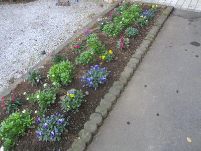 玄関前の花壇もPTAの担当の方にきれいにしていただきました。