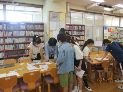 5年生、自然の大切さについて、友達の意見にもしっかり耳を傾け、自分の考えを広げたり、深めたりしています。