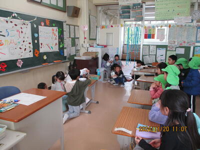 11月20日に、たけのこ保育園の子供たちが栄小学校を訪問しました。