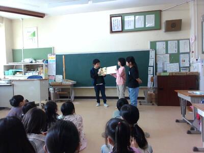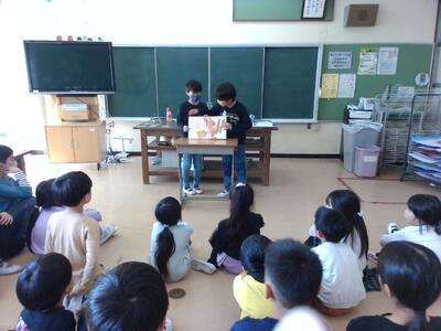 11月20日に、たけのこ保育園の子供たちが栄小学校を訪問しました。