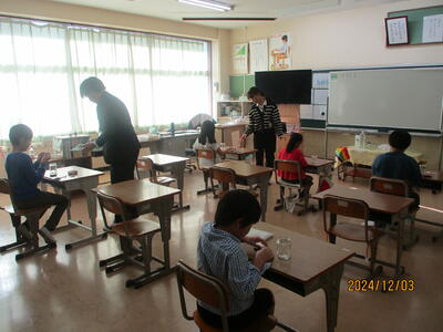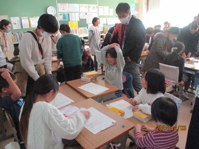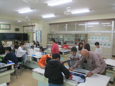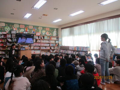 図工室・図書室・体育館・保健室・給食室・音楽室を子供たちが説明しながら回りました。
