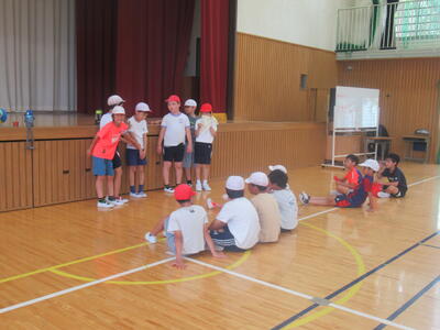 ドッジボールでは、1プレーごとに前向きな言葉をかけたり、投げていない友達にボールを渡してあげたり、相手を考えた行動が沢山ありました。