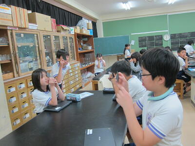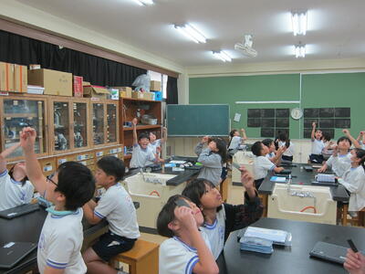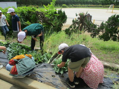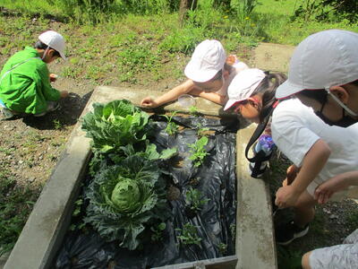 5月半ば、3年生は職員室前の花壇にあるキャベツにモンシロチョウのたまごを発見!!