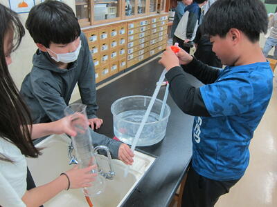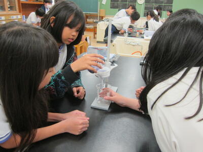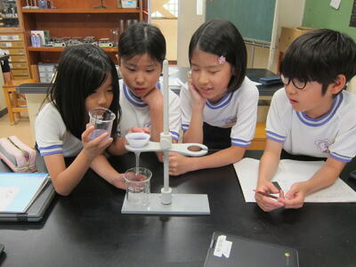 色のついた液を、胎盤に見立てたろ紙に流し込みます。