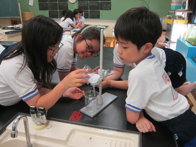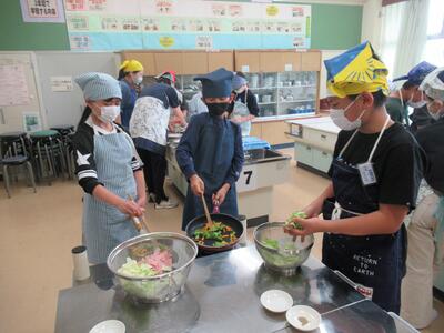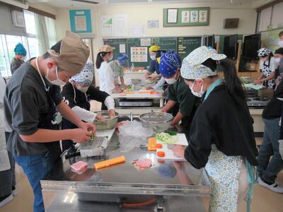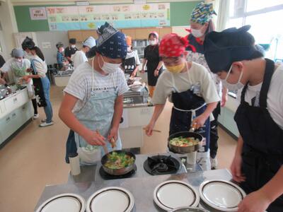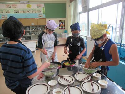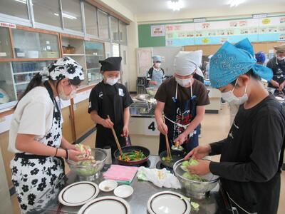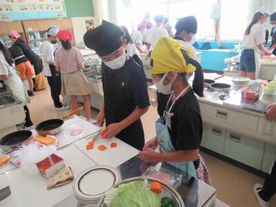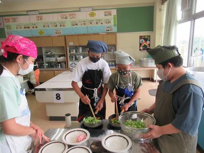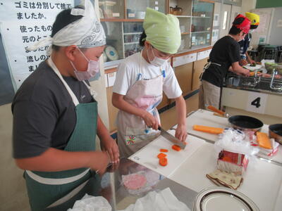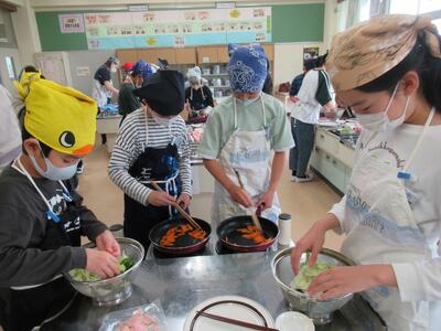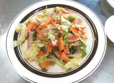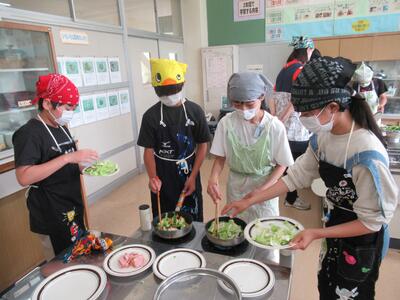 友だちと協力して、おいしいハム野菜炒めを作ることができました!