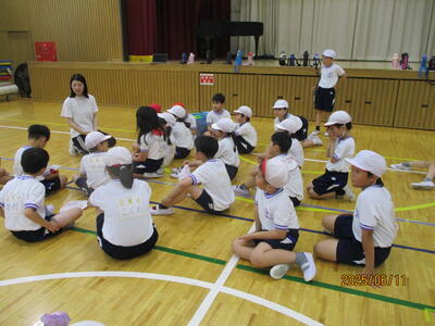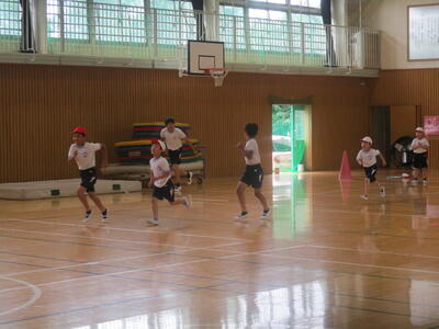 1年生は、6年生とシャトルランを一緒に行いました。やり方を教えてもらったり、回数を数えてもらったりと、たくさん応援してもらいました。
