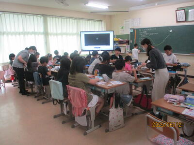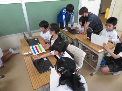 また、5年生には、クロムブックのログインの仕方を教えてもらいました。さすが5年生、手際よく教えてあげています。