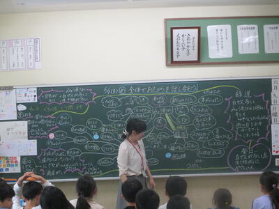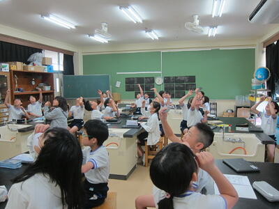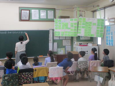 本日5校時に総合的な学習の時間の授業研究会が行われました。3年生の「大好!き栄」の授業です。