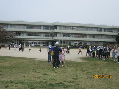 4年生は1年生の応援団。「フレー フレー 1年生!!」