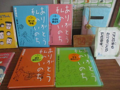 6月の全校朝会でお話した、星野富弘さんの本も紹介コーナーに並べていただきました。