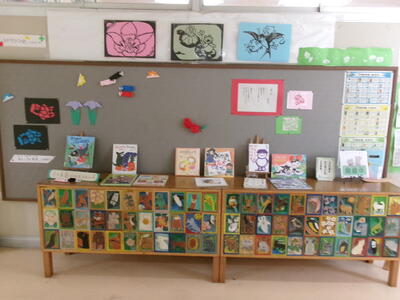 5月の図書室です。季節にちなんだ本と、昨年度の人気の本も紹介されています。図書室に行ってみてくださいね。