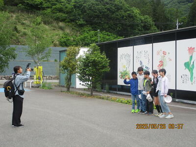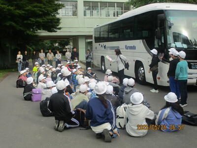 「行ってきま~す!!」6年生、元気に笑顔で学校を出発しました。早朝よりお見送りに来ていただいた皆さま、ありがとうございました。