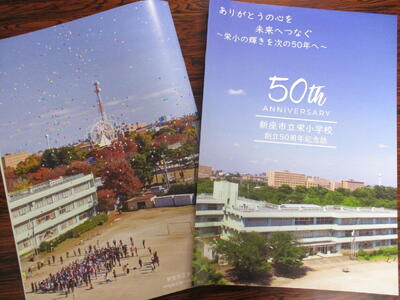 「ありがとうの心を未来へつなぐ~栄小の輝きを次の50年へ~」をスローガンとして行われた50周年記念の取組ですが、記念冊子ができあがり、全て終了となります。栄っ子の笑顔が広がるとても素敵な冊子です。実行委員の皆様には、この1年間大変お世話になりました。感謝申し上げます。