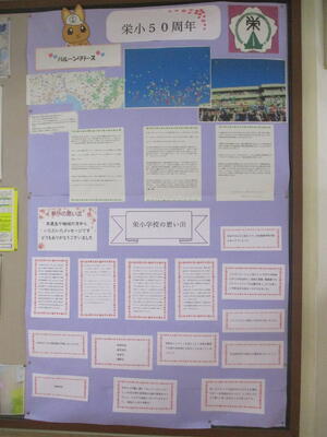 50周年記念関係の取組は職員玄関近くの掲示板に写真等が掲示してあるので、栄小にお越しの際には是非、ご覧ください。
