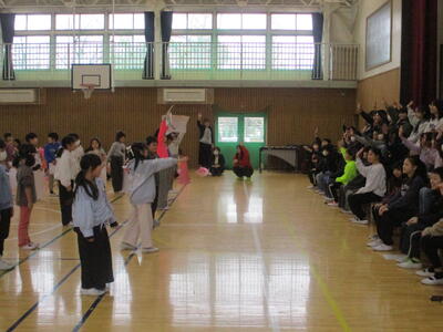 各学年が、卒業おめでとう、今までありがとう、中学校でもがんばってねの思いをこめて出し物を披露します。