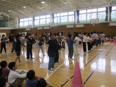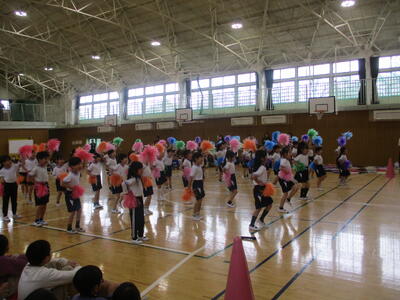 1年生は「倍倍ファイト!」の曲にのって、6年生へエール