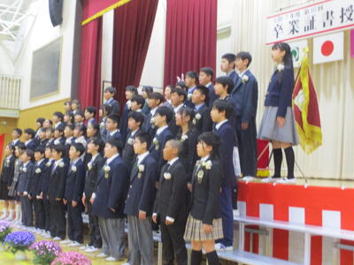私(校長)からは「卒業証書は一枚の紙ですが、そこには、みなさんの大事な、大事な6年間がぎっしりつまっています。」というお話をしました。これからも支え合える仲間を大切に、自分の選んだ道を自信をもって歩んでくださいね。