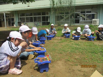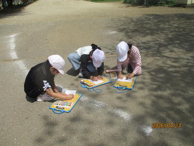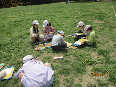 その前〔4月16日(木)〕には、校庭で春探しもしました。