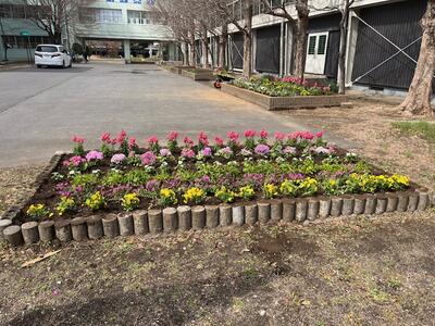 花壇の多い栄小学校もいっぱいのお花で華やかになりました!