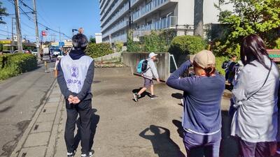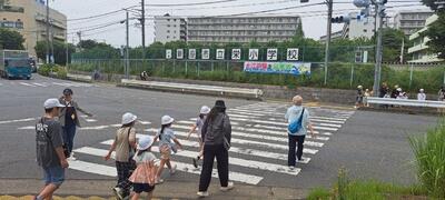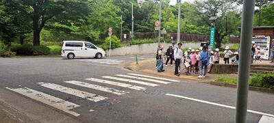 信号がすぐに変わってしまう場所や信号がない横断歩道では、まとまってスムーズに渡れるように声かけや誘導をしていただきました。