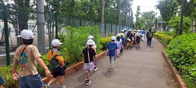 今年は20人以上の保護者の方々にご協力いただき、子どもたちと一緒に学校~和光樹林公園を歩きながら移動時の安全を見守りました。