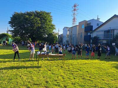 7月下旬には栄三丁目町内会の皆様とラジオ体操を行いました。