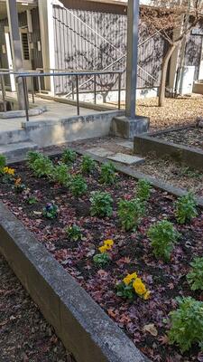 新座市では、子供たちの「生きる力」の育成のために家庭、学校、地域が連携・協力をし、地域ぐるみで子どもたちの健やかな成長を図ることを目的とした「ふれあい地域連絡協議会」を設置しています。この度、その活動である「花いっぱい運動」として学校に「ノースポール」のお花が届きました。今回は、保健室前と体育館への渡り廊下前に植えています。