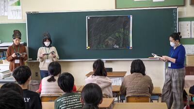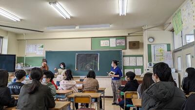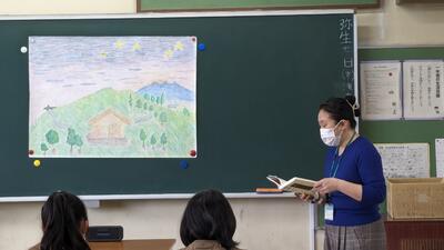 教室から聞こえる温かい声は、おはなし隊の皆さんです。その始まりは1997年。保護者の皆さんの声かけで始まった図書室での低学年への「よみきかせ」は、時を経て各教室へと広がり、今では全校生徒の木曜日の朝の楽しいひと時となっています。