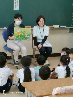 低学年のクラスは話しかけながら読める本、高学年のクラスは読み終えたとき、どんな所に興味をもったか問いかけながら、次回の「よみきかせ」への構想をねっているそうです。