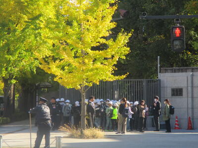 12日、6年生は電車に乗って国会議事堂方面へ社会科見学に出かけました。まず、永田町駅の改札を出た場所に集合です。朝の混んでいる電車に乗ったので、ここで皆に会えてほっとしたようです。