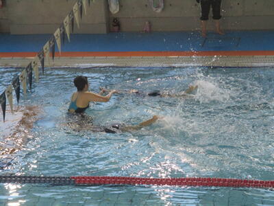 スイミングスクールでの学習がスタートしました。写真は2年生の様子です。コース別に分かれての学習になります。楽しく、しっかり学んでいる子がたくさんいました。